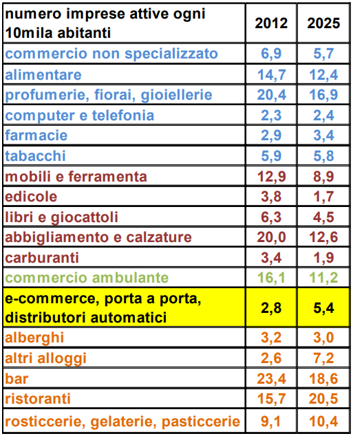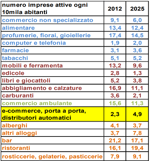 La demografia degli esercizi commerciali, 2012-2025