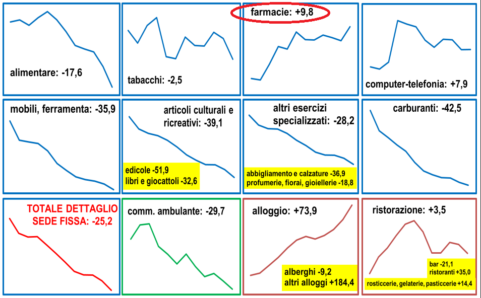 Al di là delle interpretazioni, comunque il quadro delineato dallo studio interessa anche il canale farmaceutico: se la pianificazione territoriale garantisce la presenza capillare delle farmacie, la progressiva scomparsa delle altre attività commerciali può infatti impoverire il contesto urbano in cui esse operano, riducendo il traffico pedonale e spingendo i consumatori a concentrare i propri acquisti in poli commerciali o distretti più vivaci. In altre parole, mentre la farmacia resta un presidio stabile del territorio, il rischio è che attorno ad essa si creino quartieri sempre meno attrattivi e meno frequentati, con ricadute indirette anche sulla clientela.