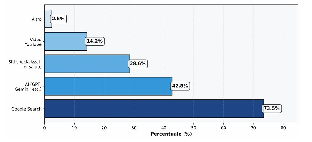 Superano ormai il 94% gli italiani che si rivolgono a internet o al digitale per informarsi su sintomi, malattie e terapie, e di questi più del 53%) lo fa in modo abituale. Ma la notizia è un’altra: tra coloro che si affidano all’online per aggiornarsi sulla loro salute, Google rimane il riferimento principale ma quasi la metà (il 43% circa) si affida oggi all’intelligenza artificiale, ossia ChatGpt, Gemini e le altre piattaforme, che hanno ormai superato e distanziato i siti di informazione sulla salute (consultati da meno del 30% di chi naviga). I numeri arrivano dallo studio Salute Artificiale, condotto da Sociometrica e FieldCare su un campione di circa mille adulti e sostenuta da Fondazione Italia in Salute e Fondazione Pensiero Solido con il contributo di Assolombarda. Presentata il 2 febbraio a Milano, la ricerca dimostra con dati alla mano che l’AI generativa sta cambiando le abitudini del Paese. E lo sta facendo molto in fretta, se si considera che applicazioni come Chatgpt sono diventate di uso comune solo negli ultimi anni.
