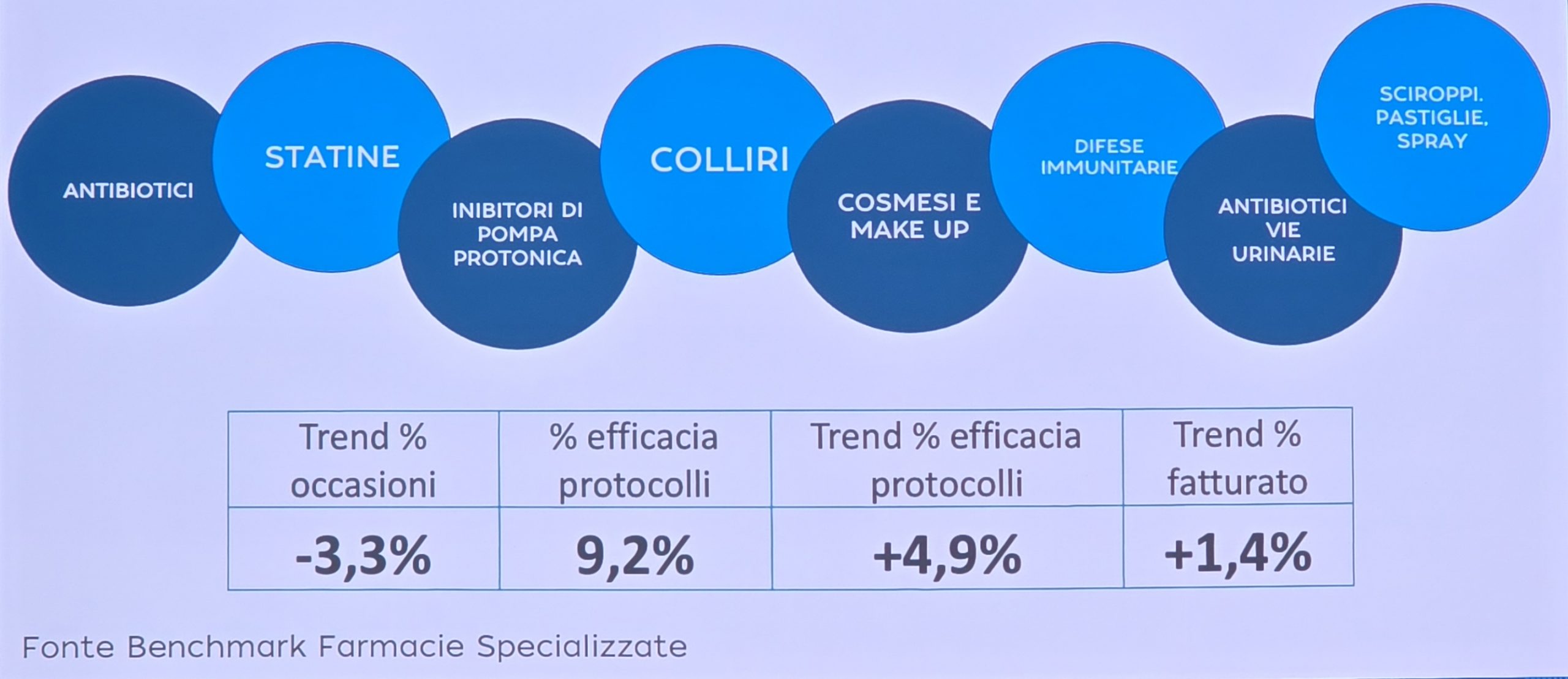 Se si devesse riassumere con una parola d’ordine, questa sarebbe “focalizzazione”. «È vitale gestire tempo ed energie» ha detto di nuovo Corvi «e per farlo dobbiamo ottimizzare, anche nei confronti dei nostri partner: avere meno grossisti e fornitori significa risparmiare tempo, che possiamo dedicare ai clienti e ai collaboratori, in particolare per accrescere l’affiatamento del team». A guadagnarne è l’efficacia della consulenza: in poco più di nove casi su dieci, dicono i dati, il consiglio del farmacista formulato secondo le indicazioni fornite dai protocolli del network si sono tradotte in un acquisto aggiuntivo, da cui un incremento del fatturato dell’1,4%.