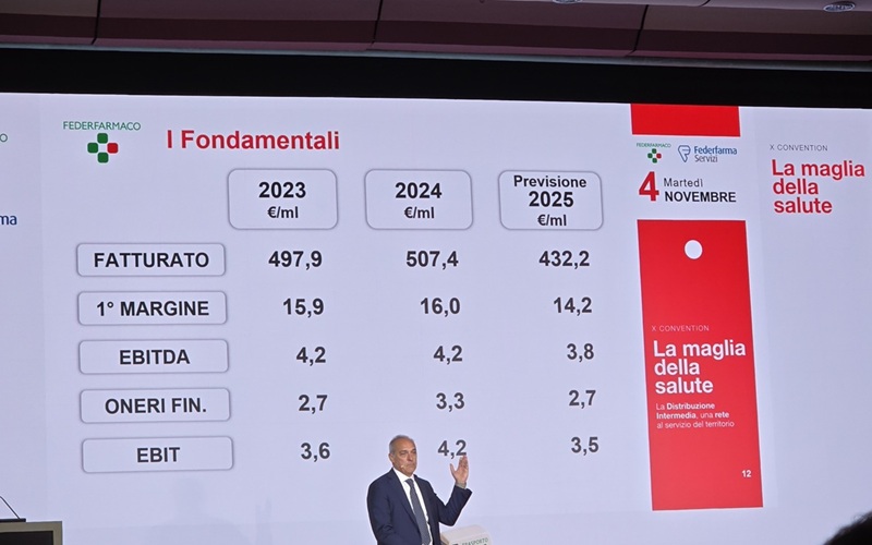 Alle incognite sulla riorganizzazione si aggiungono quelle originate dal bilancio. Nel suo intervento, infatti, Mascherpa ha fornito un’anticipazione della chiusura 2025 dalla quale emerge una contrazione significativa del giro d’affari: se nel 2024 il consuntivo aveva chiuso con ricavi per oltre 507 milioni di euro e un ebit di 4,2, quest’anno la previsione parla di entrate per poco più di 432 milioni e un ebit di 3,5 milioni. Le ragioni, ha spiegato il direttore generale di Federfarmaco, risiedono principalmente nella perdita della quota associativa di Unico, che dallo scorso luglio è confluito in Q Farma, e da un calo degli ordini inviati alla centrale dalle cooperative. In ogni caso, ha ricordato Mascherpa, «la chiusura del 2025 è in linea con gli anni precedenti e conferma la solidità dei conti», mentre il consolidato chiuderà a 488 milioni, in crescita rispetto alle stime, grazie anche al contributo dell’investimento in Viprof». Infine, tra le note positive si segnala il contenimento degli oneri finanziari, che dai 3,3 milioni del 2024 calano ai 2,7 milioni della stima 2025.