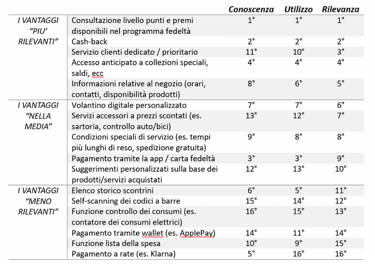 Per quanto concerne l’attrattività dei vantaggi offerti dai programmi fedeltà, la ricerca mette in luce il peso crescente dei servizi riservati ai clienti registrati o ai membri dei programmi fedeltà. L’Osservatorio ha censito sedici diverse tipologie di servizi, valutandone conoscenza, utilizzo e importanza percepita. In testa alla classifica figurano strumenti molto concreti come la consultazione del saldo punti e dei premi disponibili e il cashback, seguiti dal servizio clienti dedicato e dall’accesso anticipato a promozioni o collezioni speciali. In fondo alla graduatoria trovano spazio funzioni più evolute, come il pagamento a rate o tramite wallet digitali.