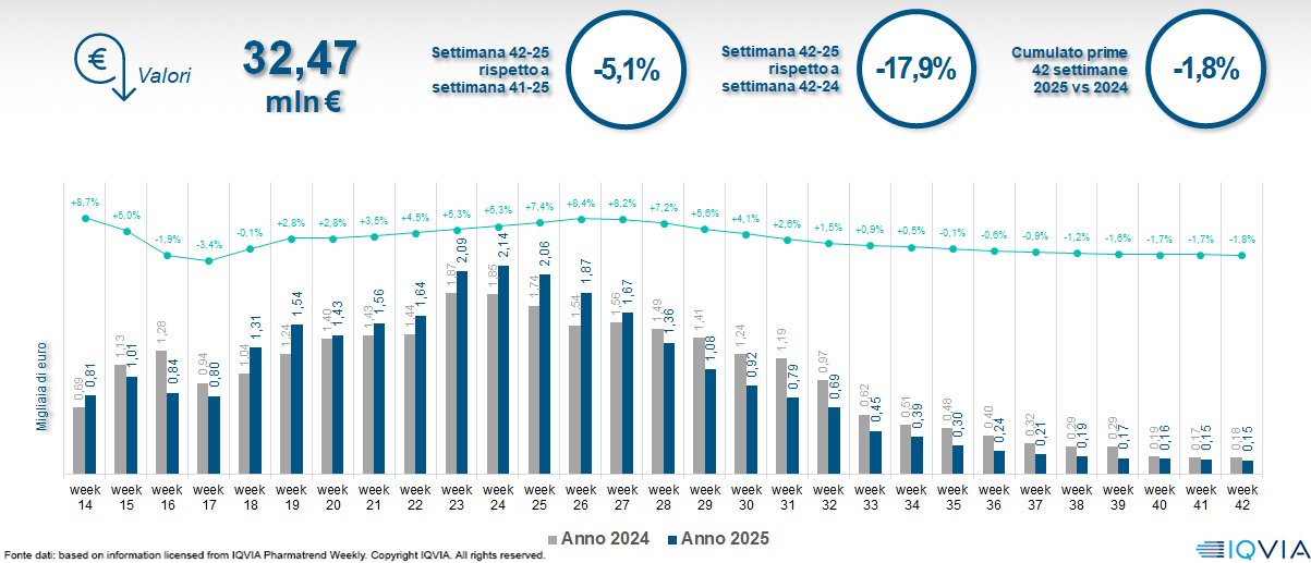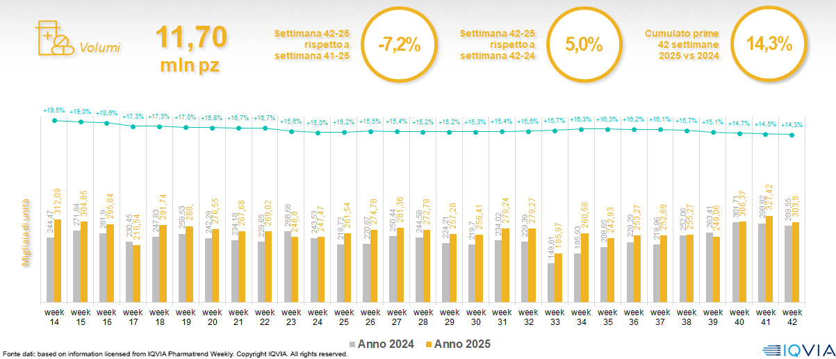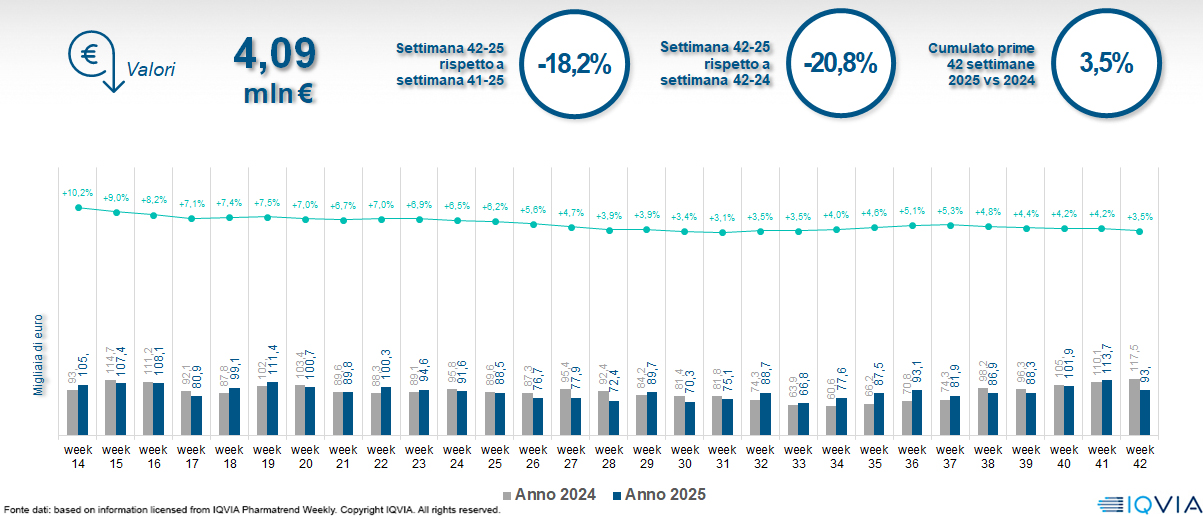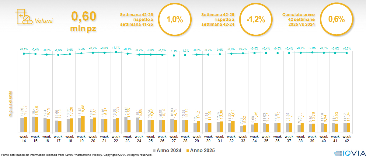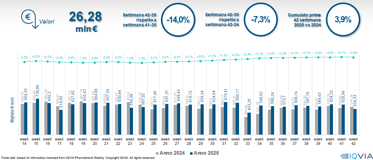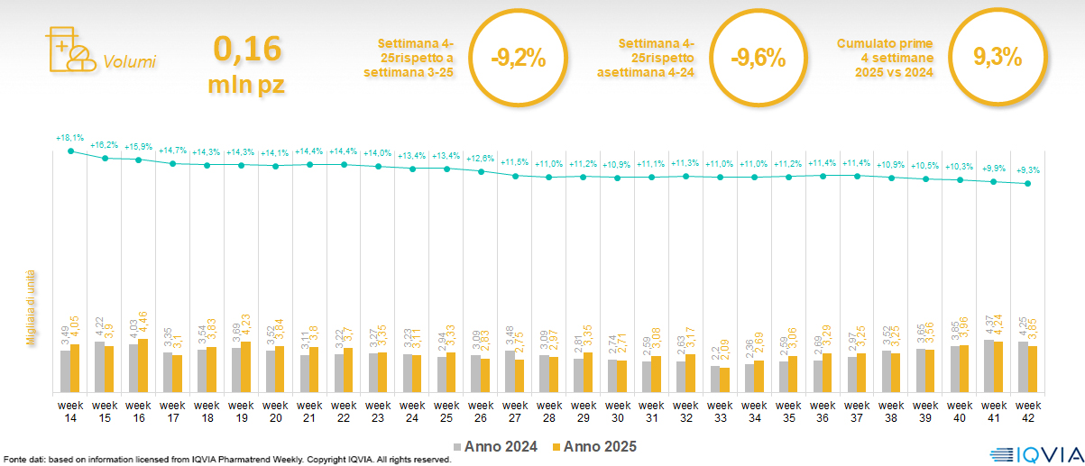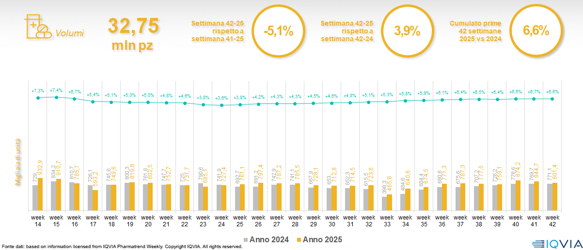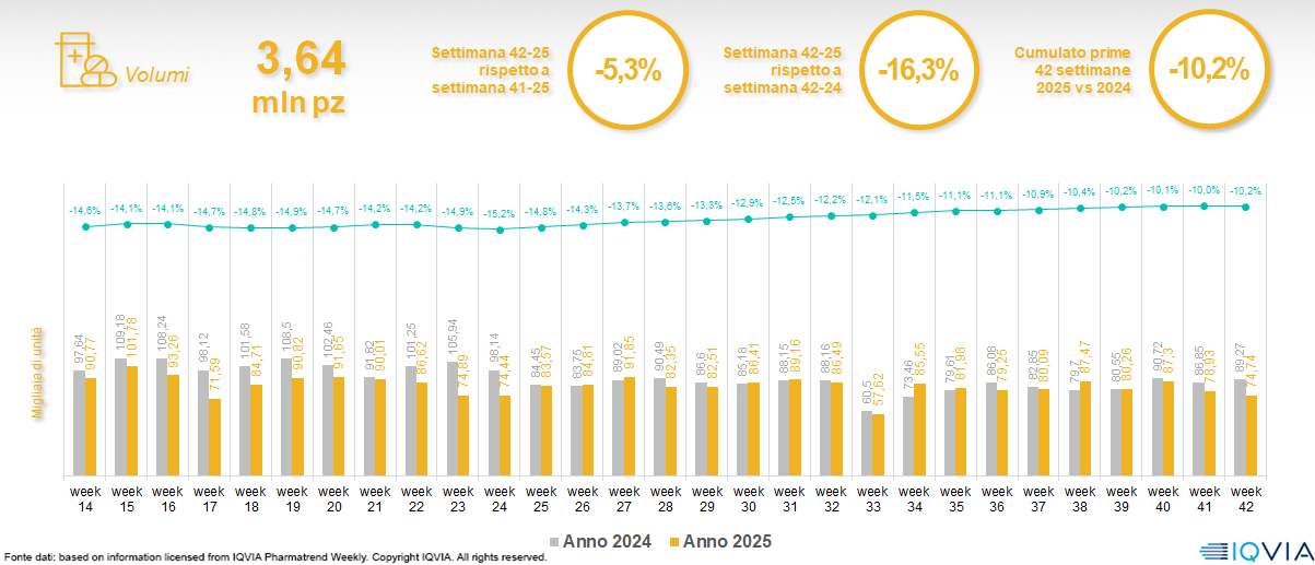 Il mercato online della farmacia alla 42ª settimana del 2025
