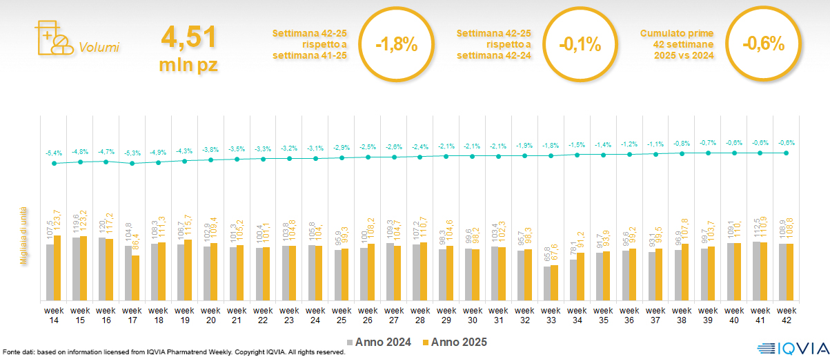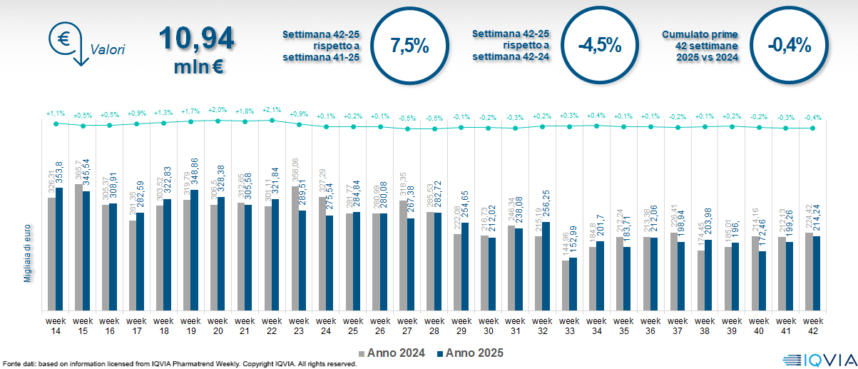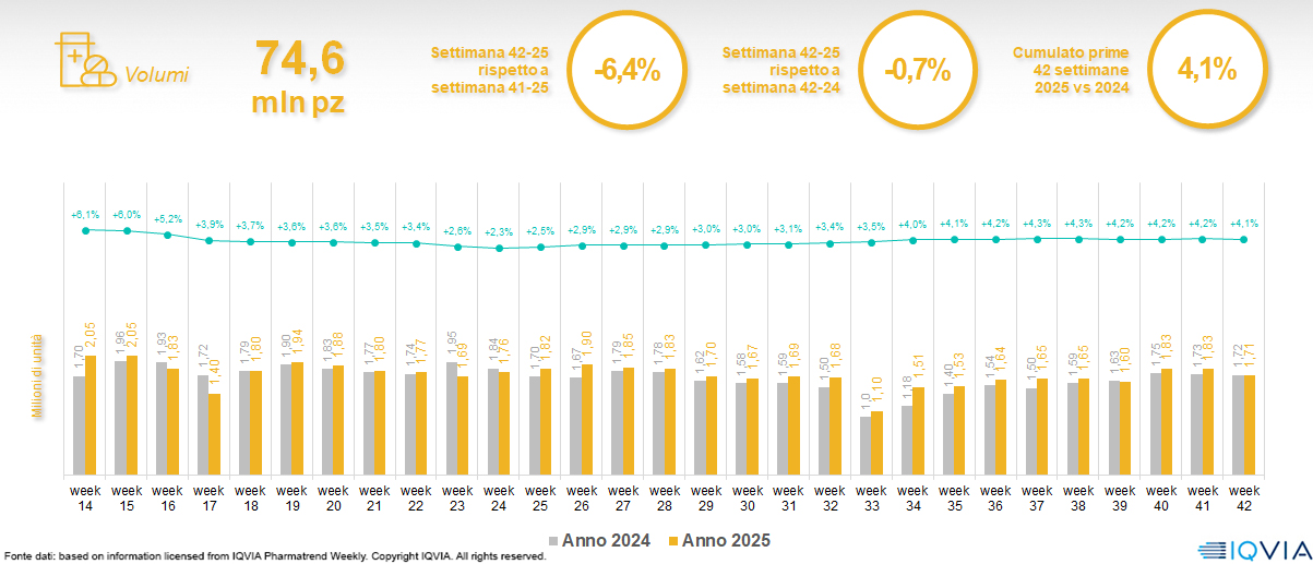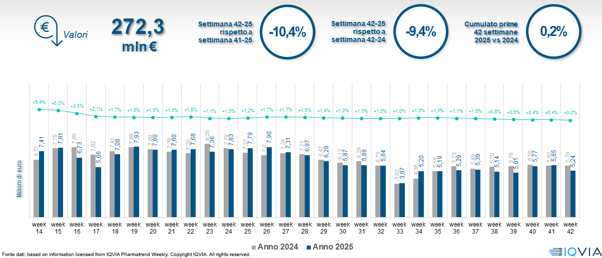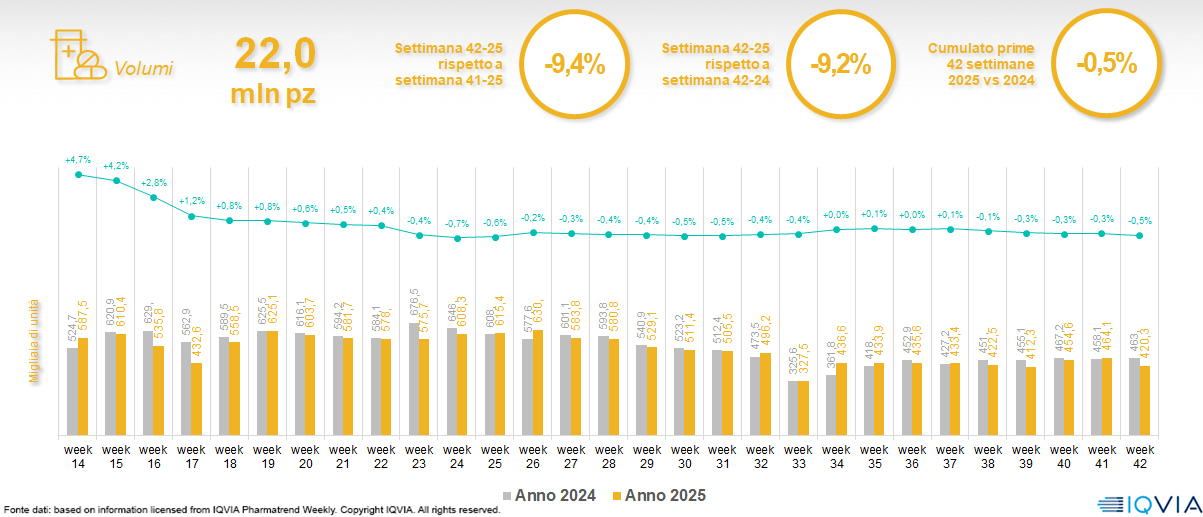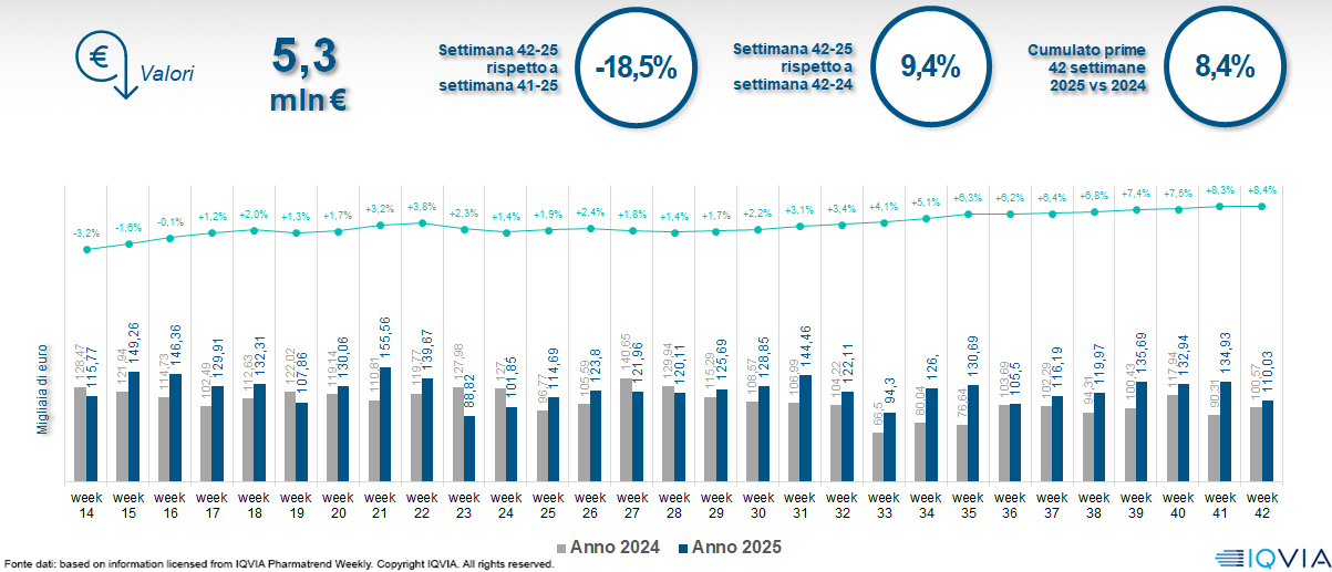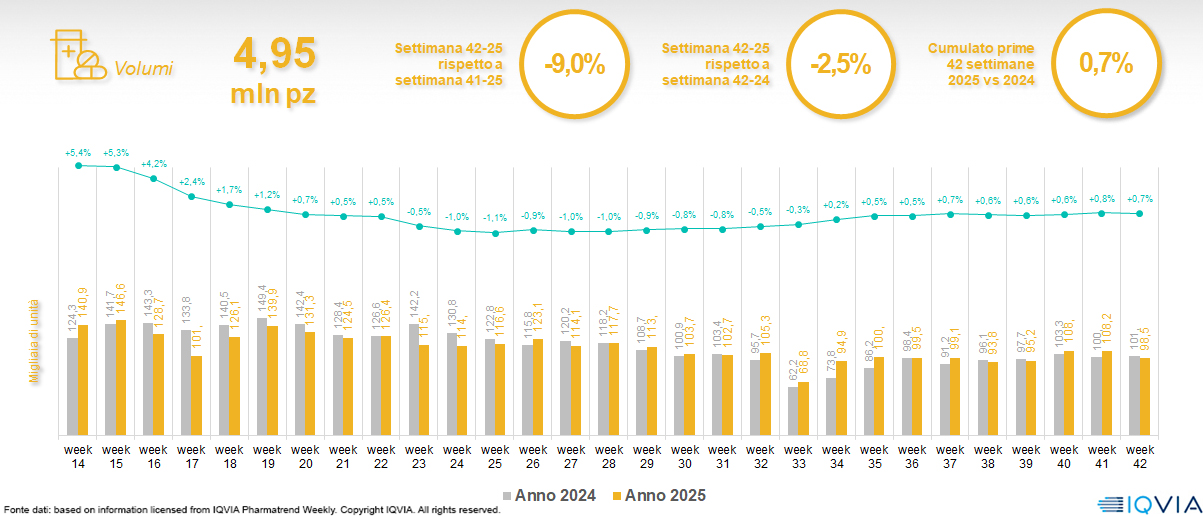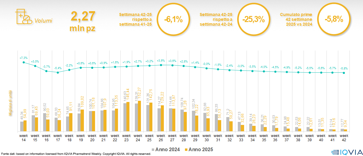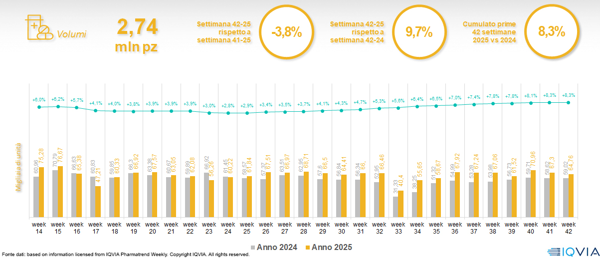 Il mercato online della farmacia alla 42ª settimana del 2025