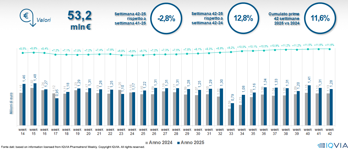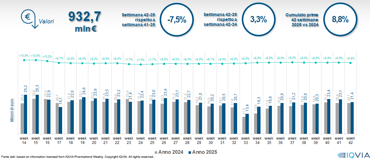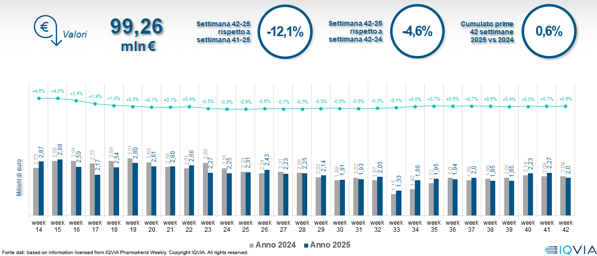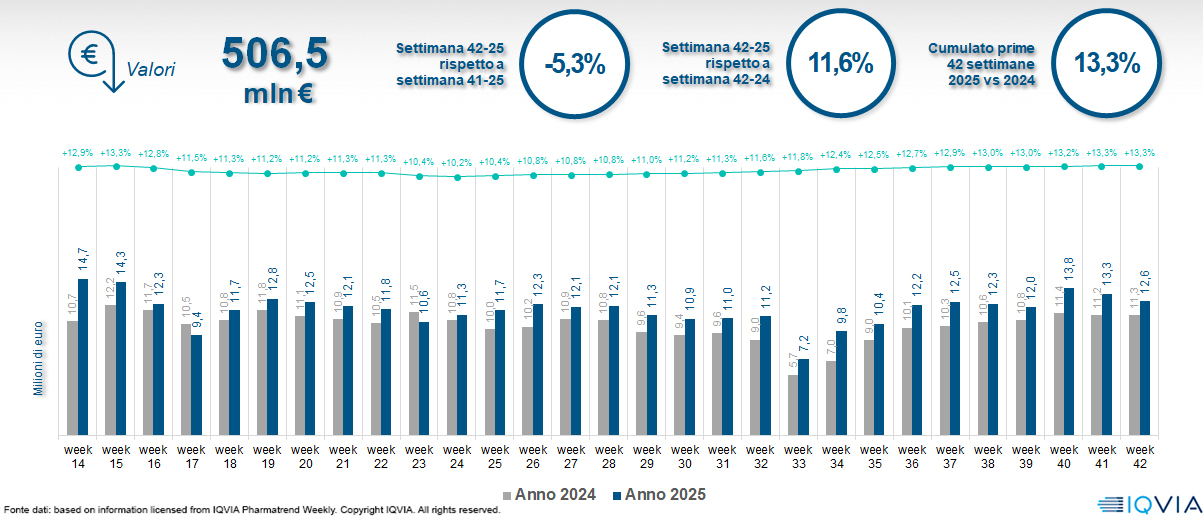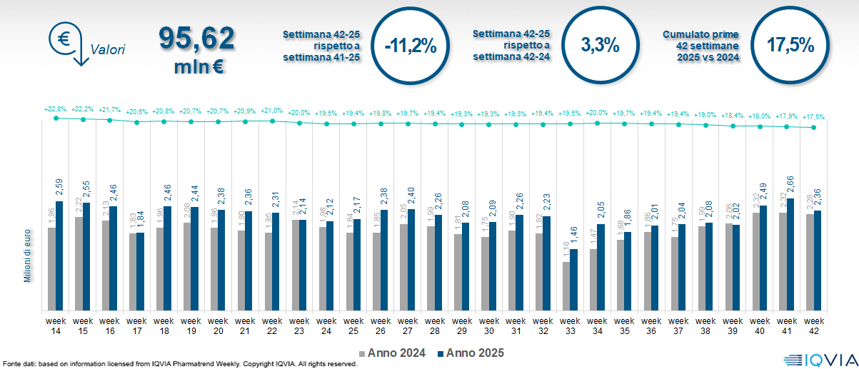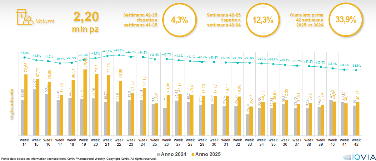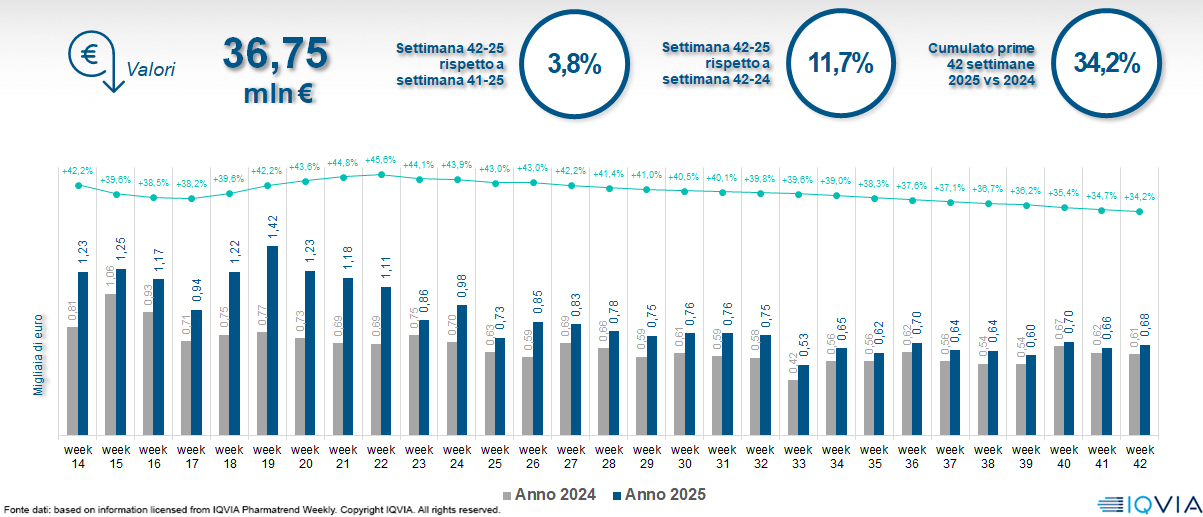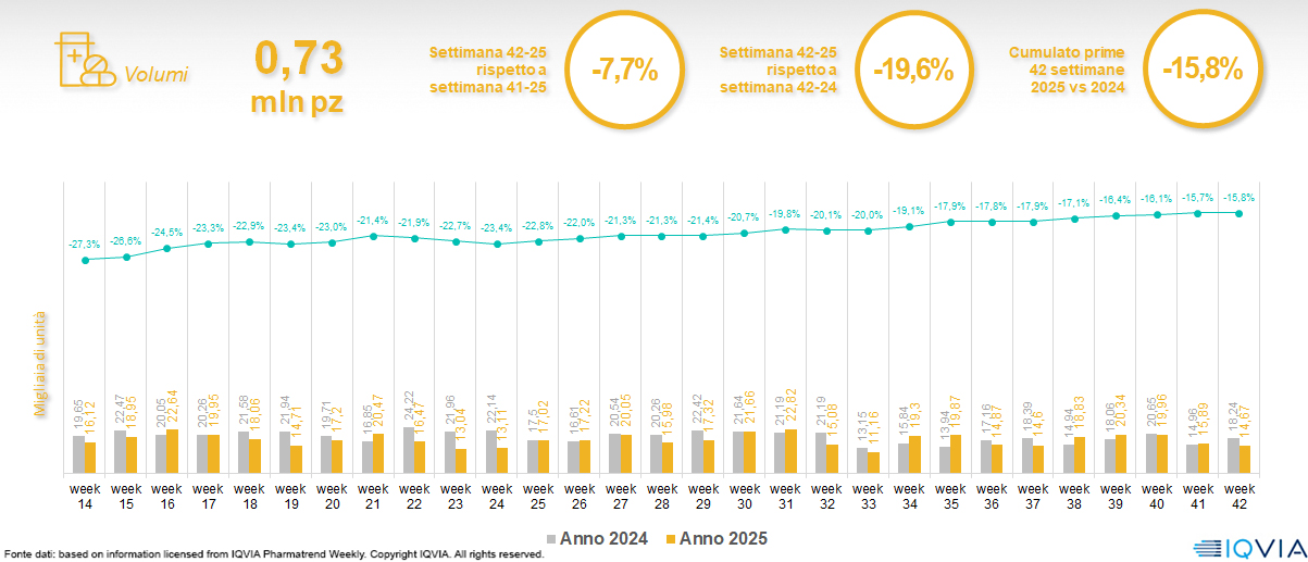 Il mercato online della farmacia alla 42ª settimana del 2025