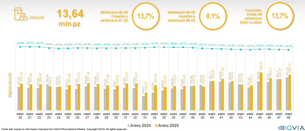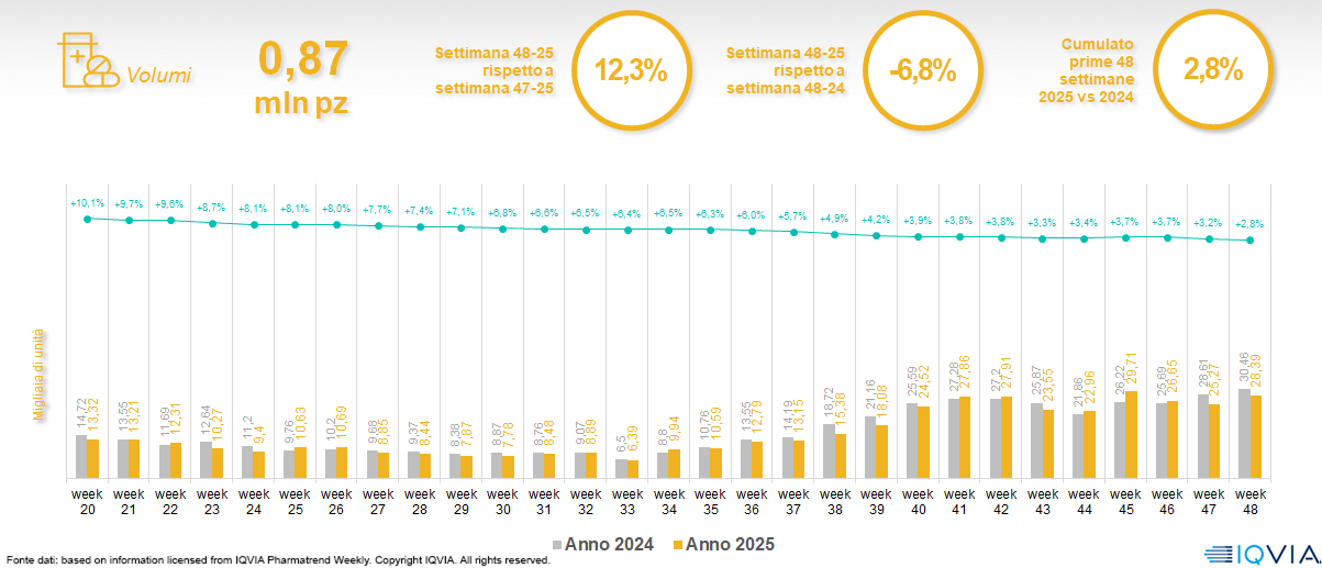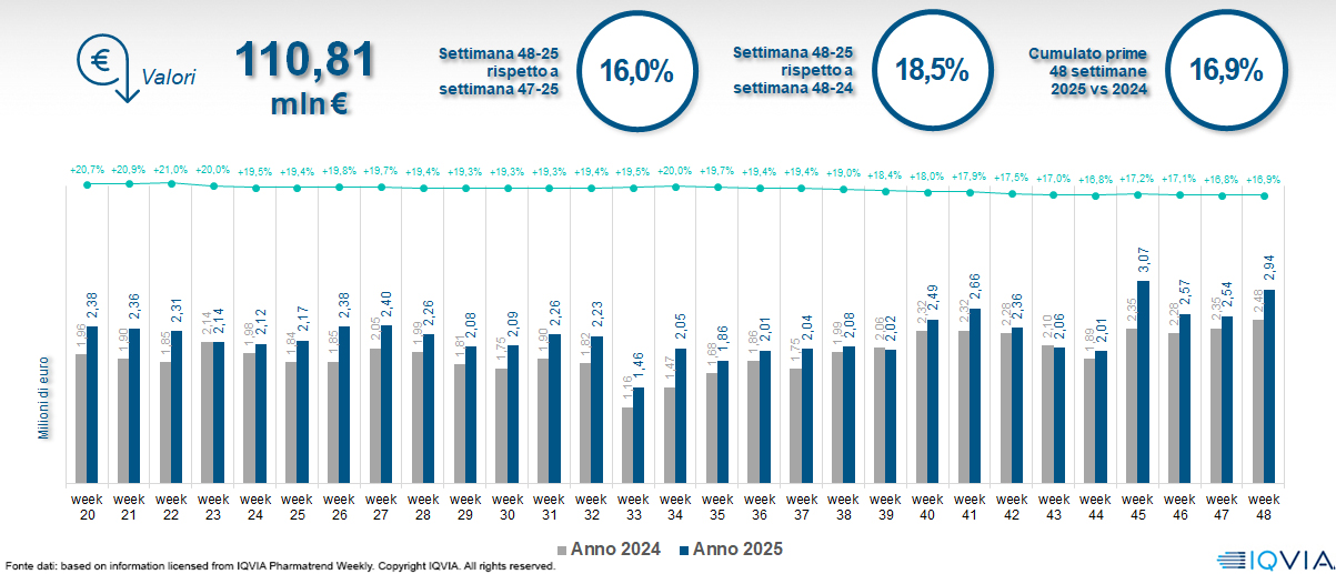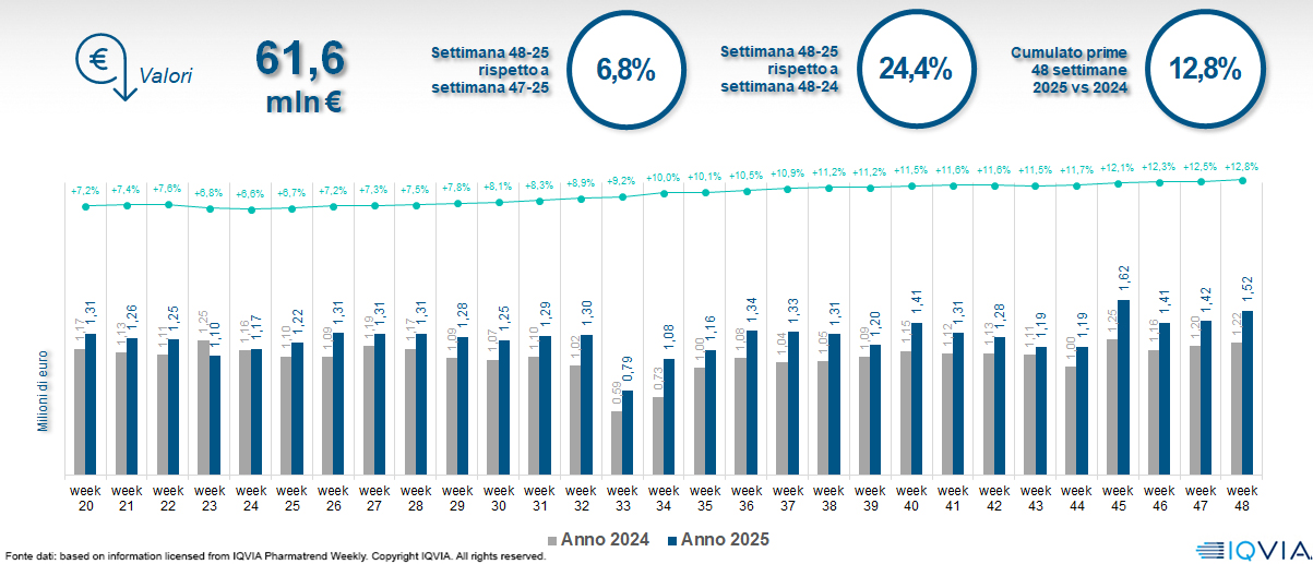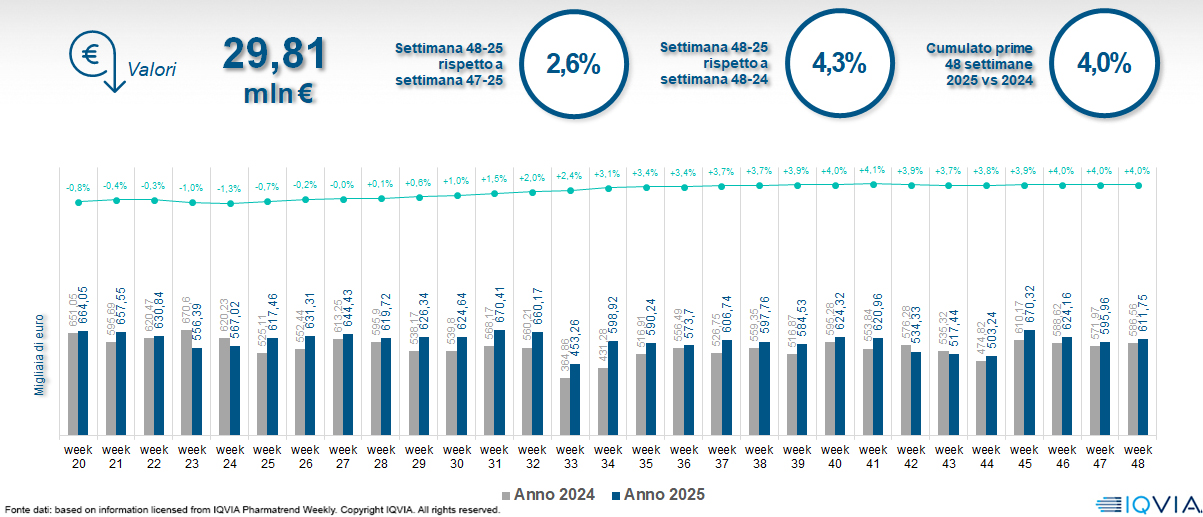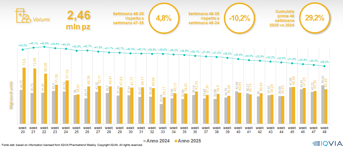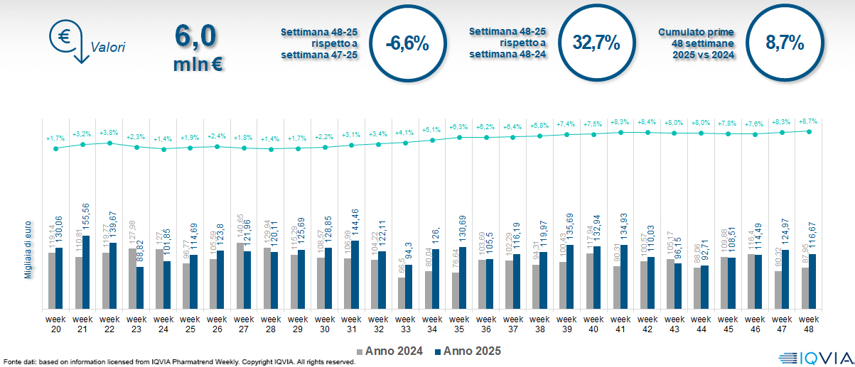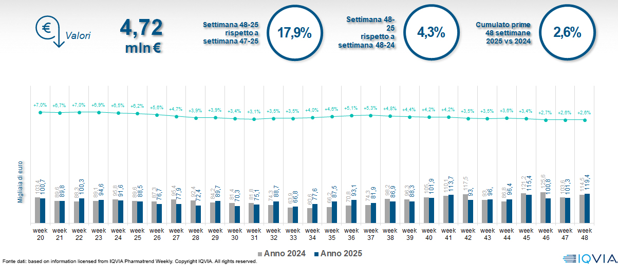 Il mercato online della farmacia alla 48ª settimana del 2025