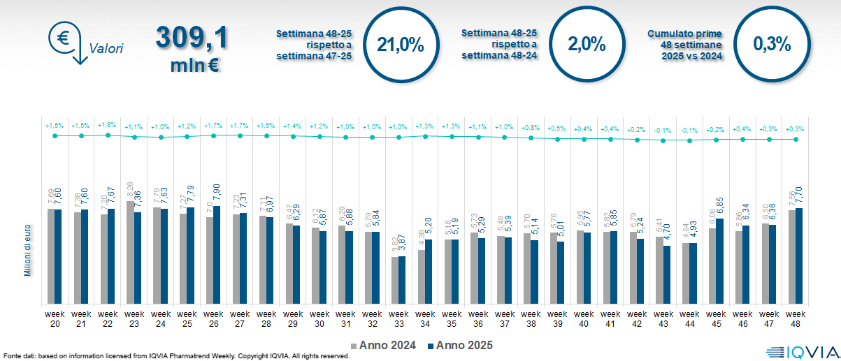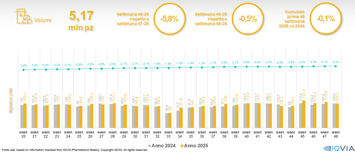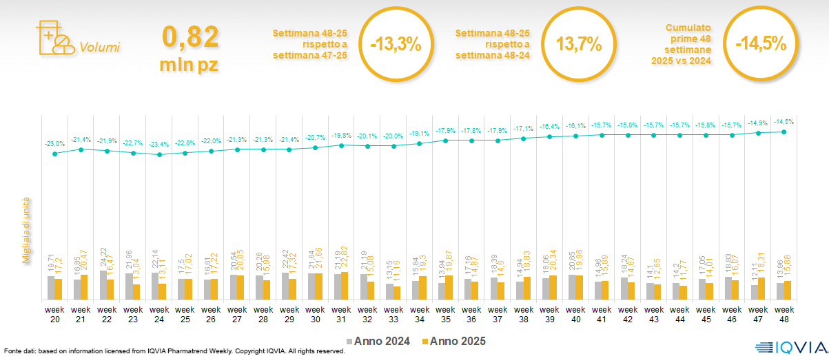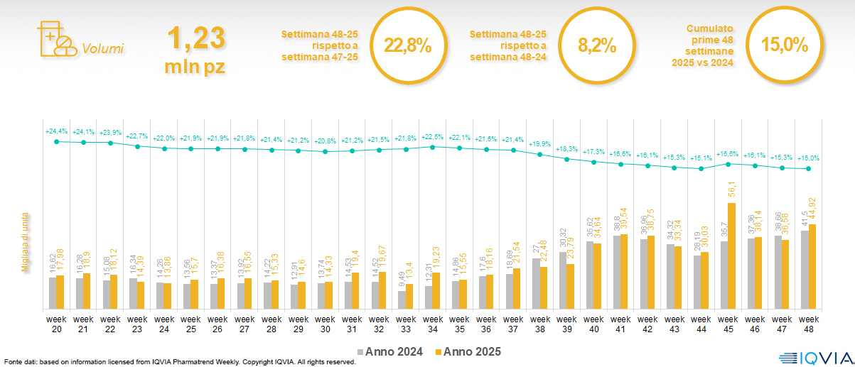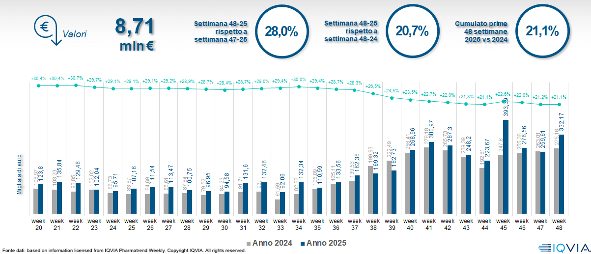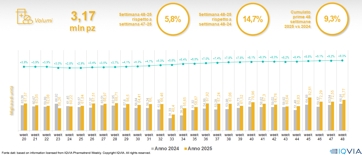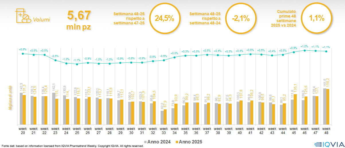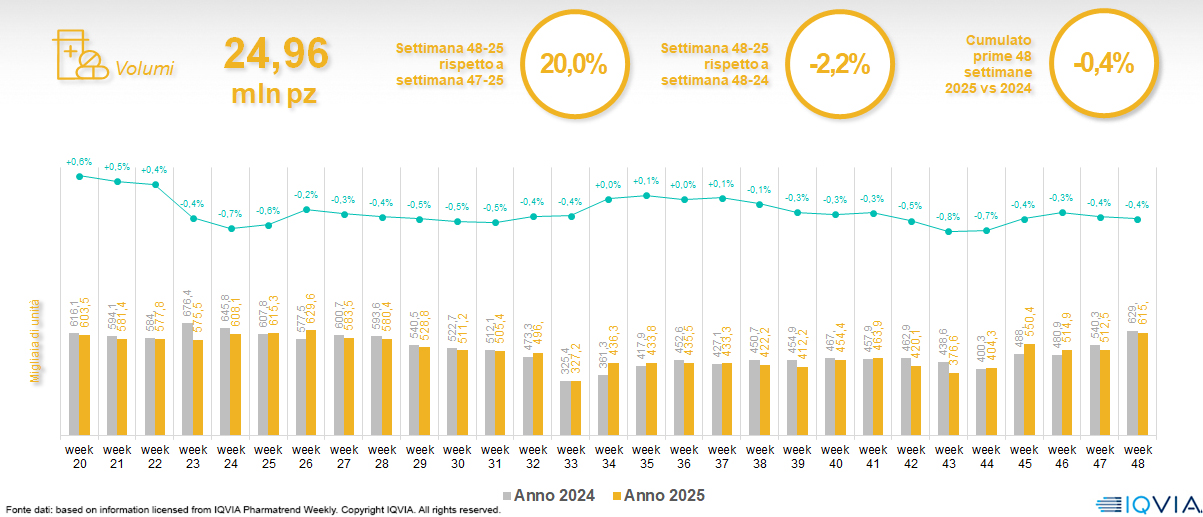 Il mercato online della farmacia alla 48ª settimana del 2025