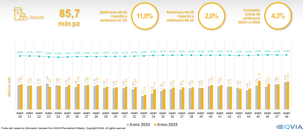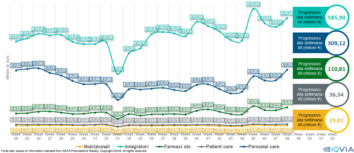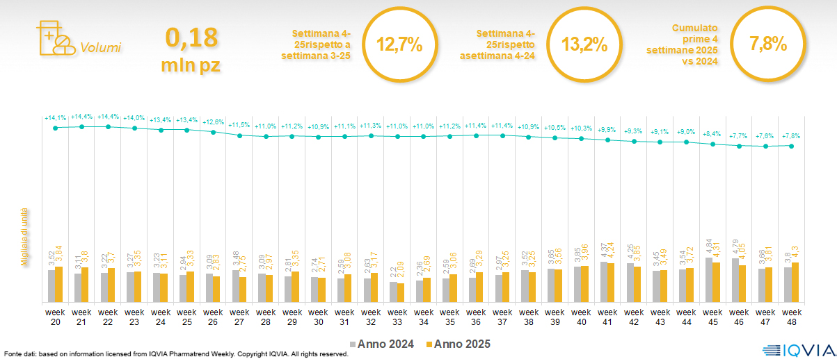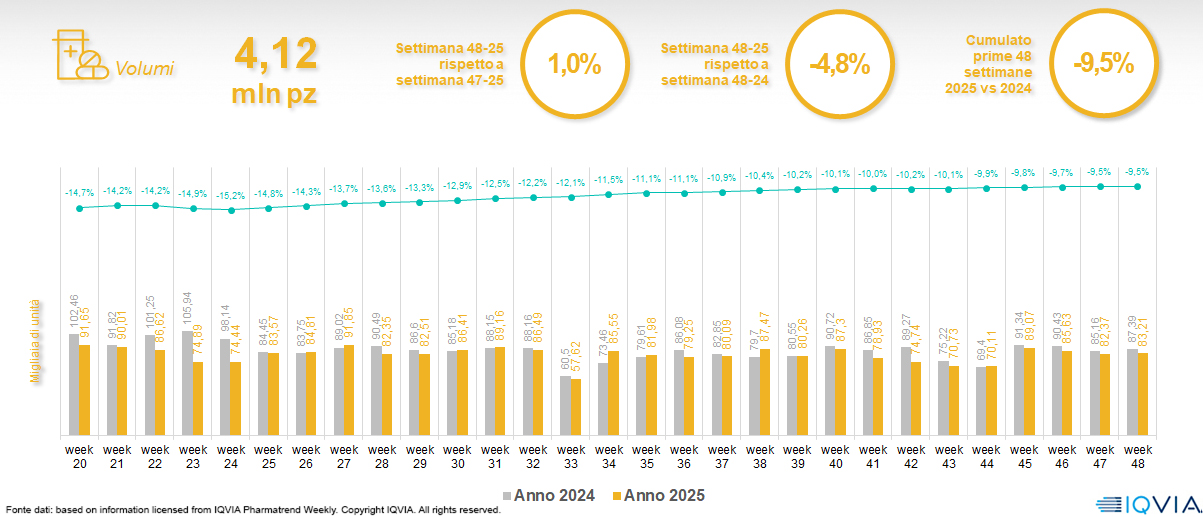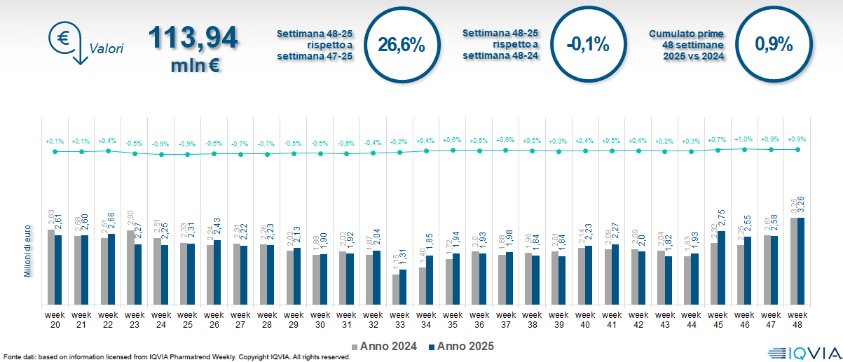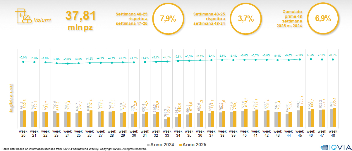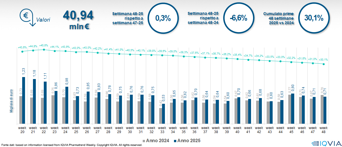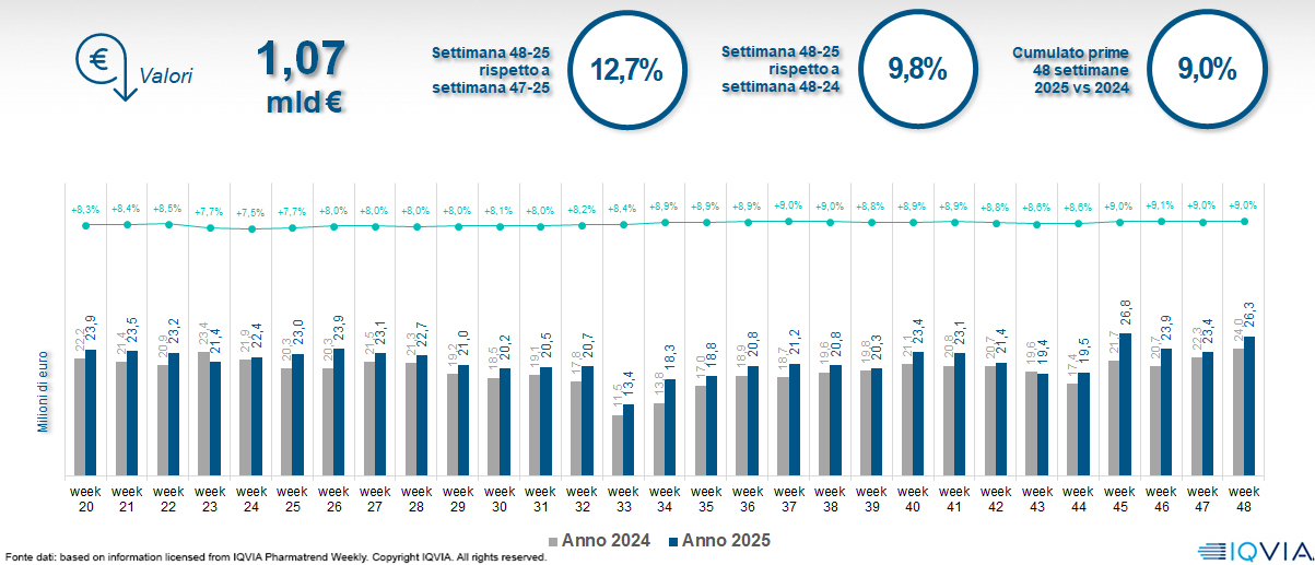 Il mercato online della farmacia alla 48ª settimana del 2025