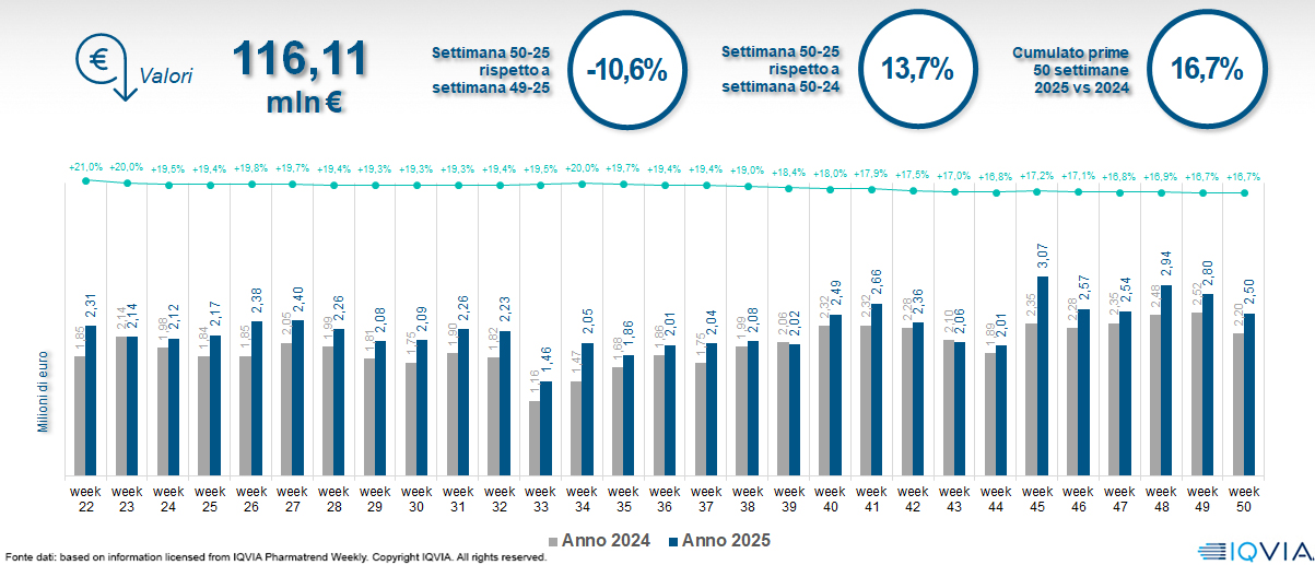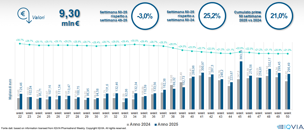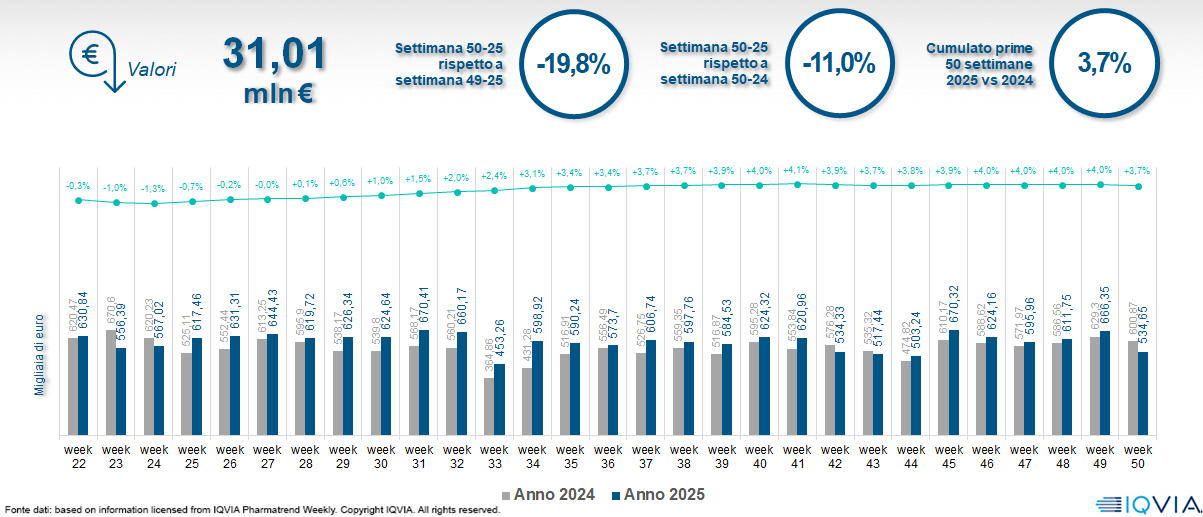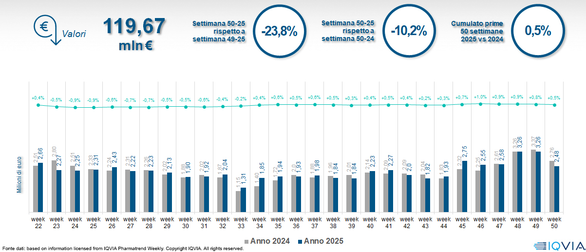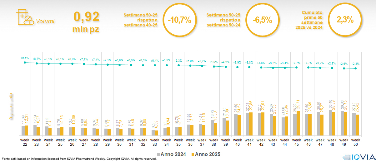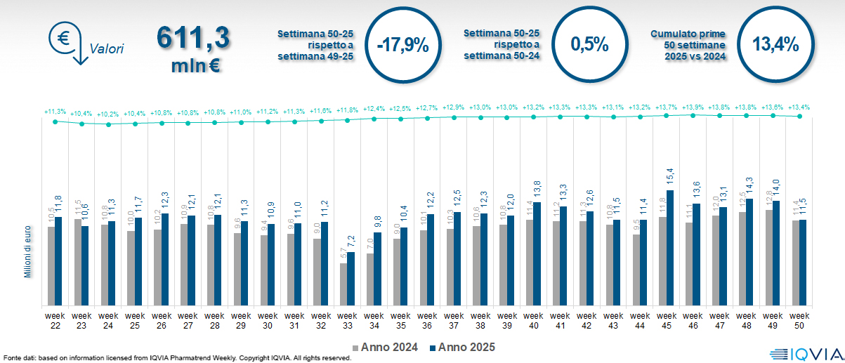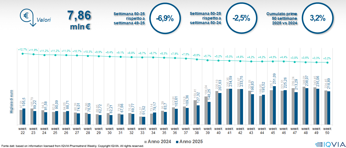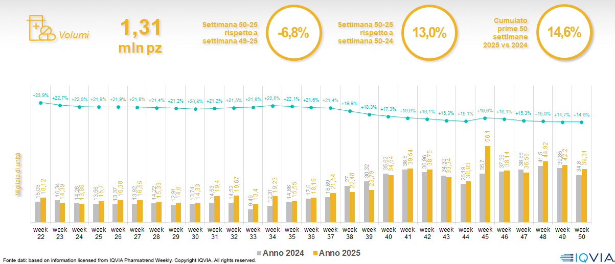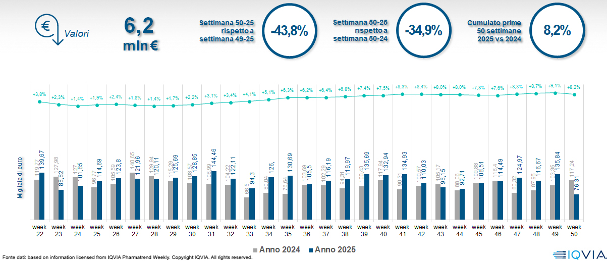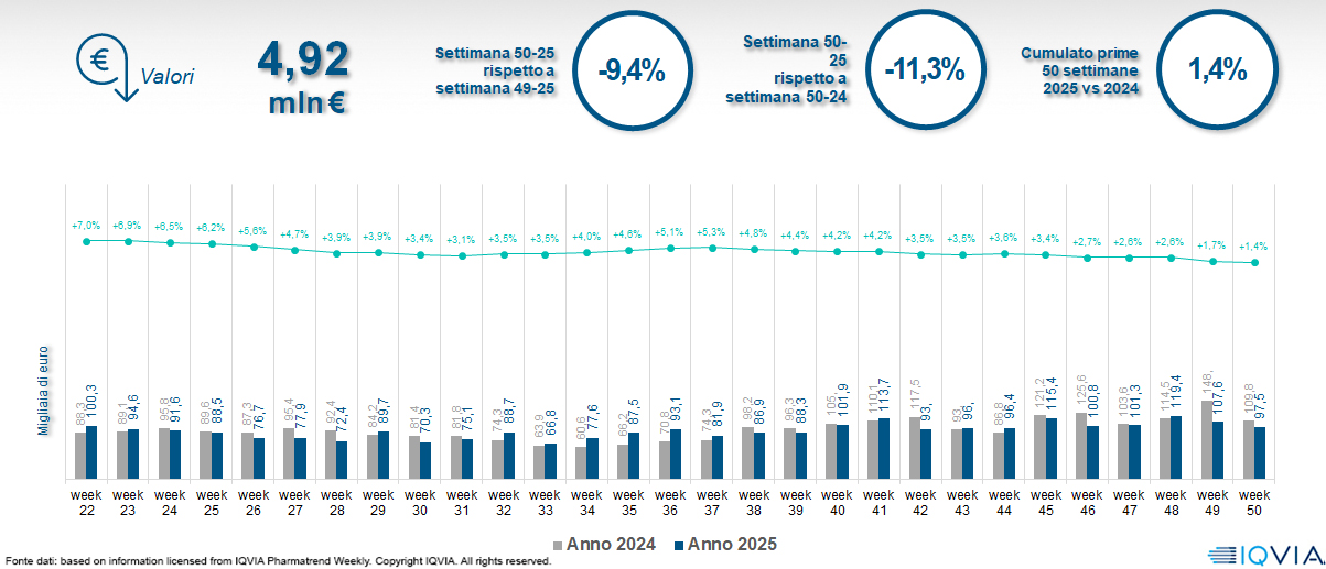 Il mercato online della farmacia alla 50ª settimana del 2025