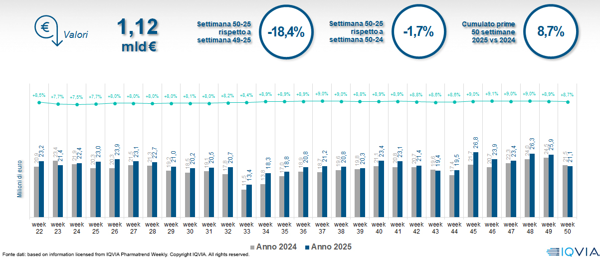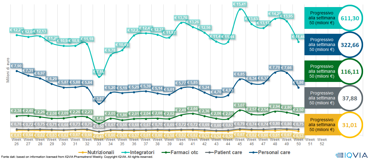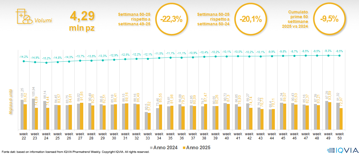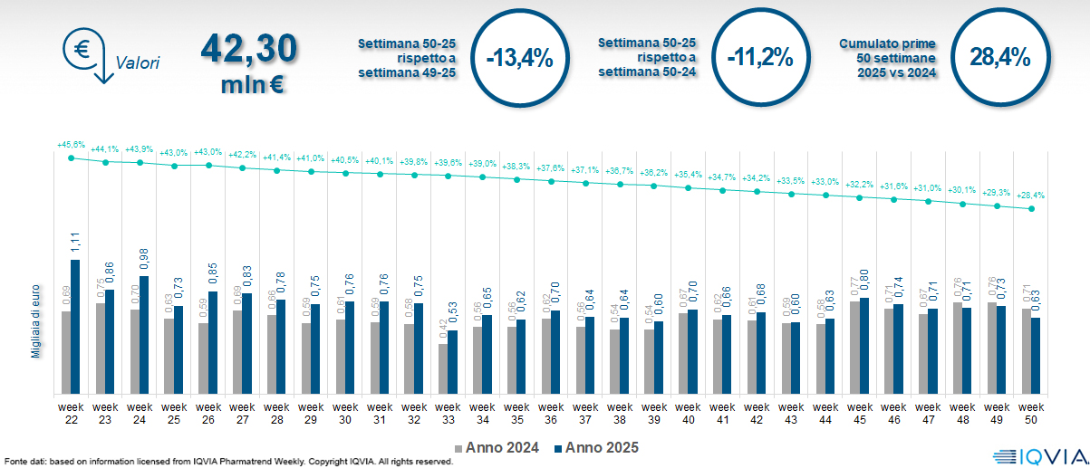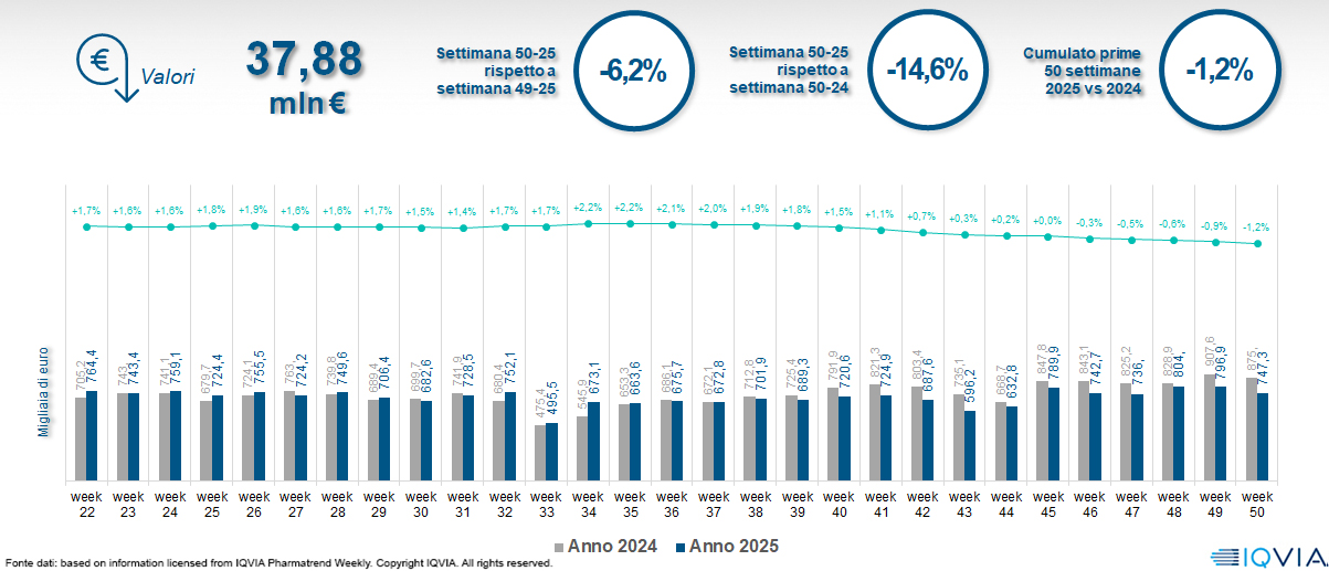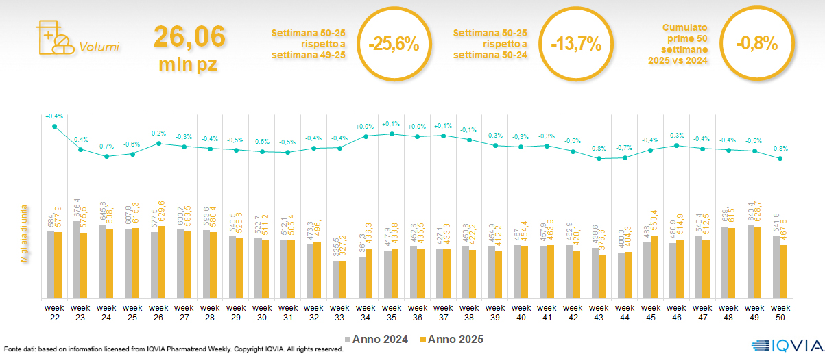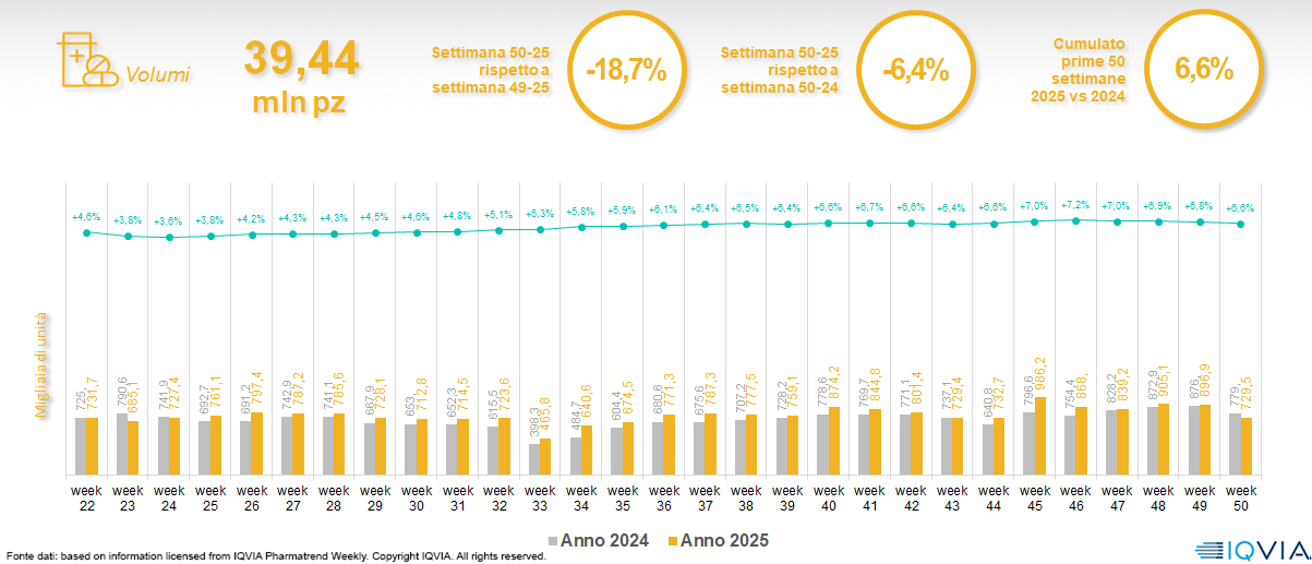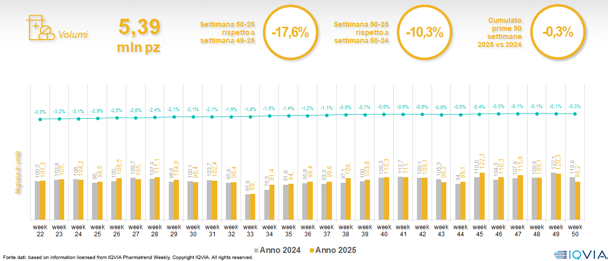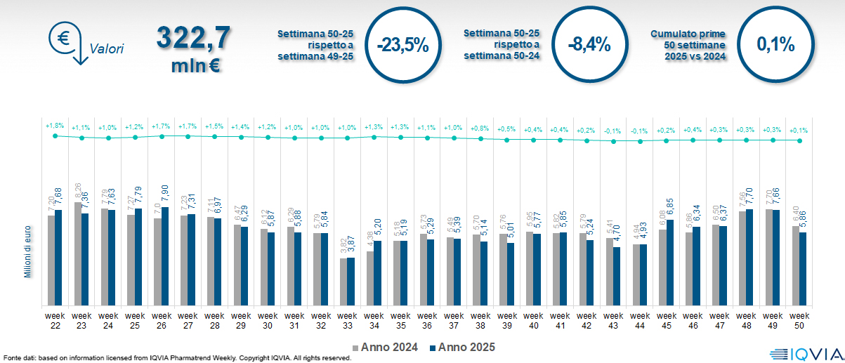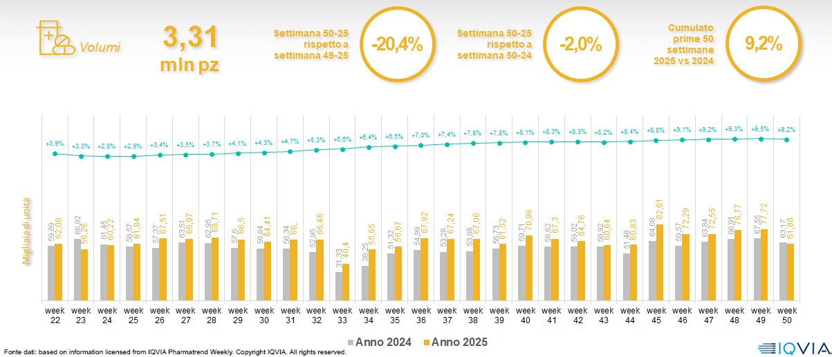 Il mercato online della farmacia alla 50ª settimana del 2025