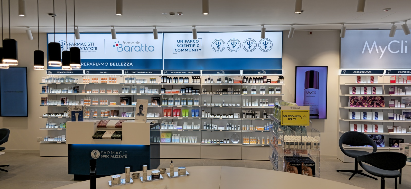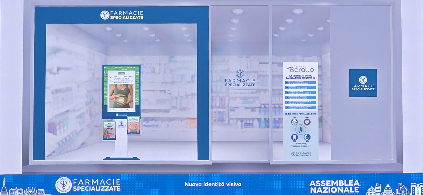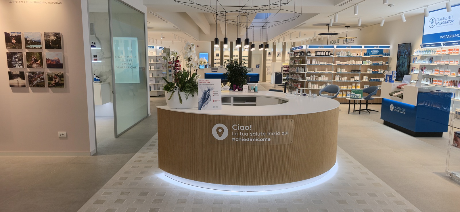 Il primo messaggio trasmesso dal concept traspare già dalla vetrina: è finito il tempo in cui bastava scrivere “farmacia” sull’insegna. «I clienti» dice Luigi Corvi, presidente di Unifarco e amministratore di Farmacie Specializzate «ci chiedono riconoscibilità e identità, occorre un brand più leggibile, più chiaro e più moderno».