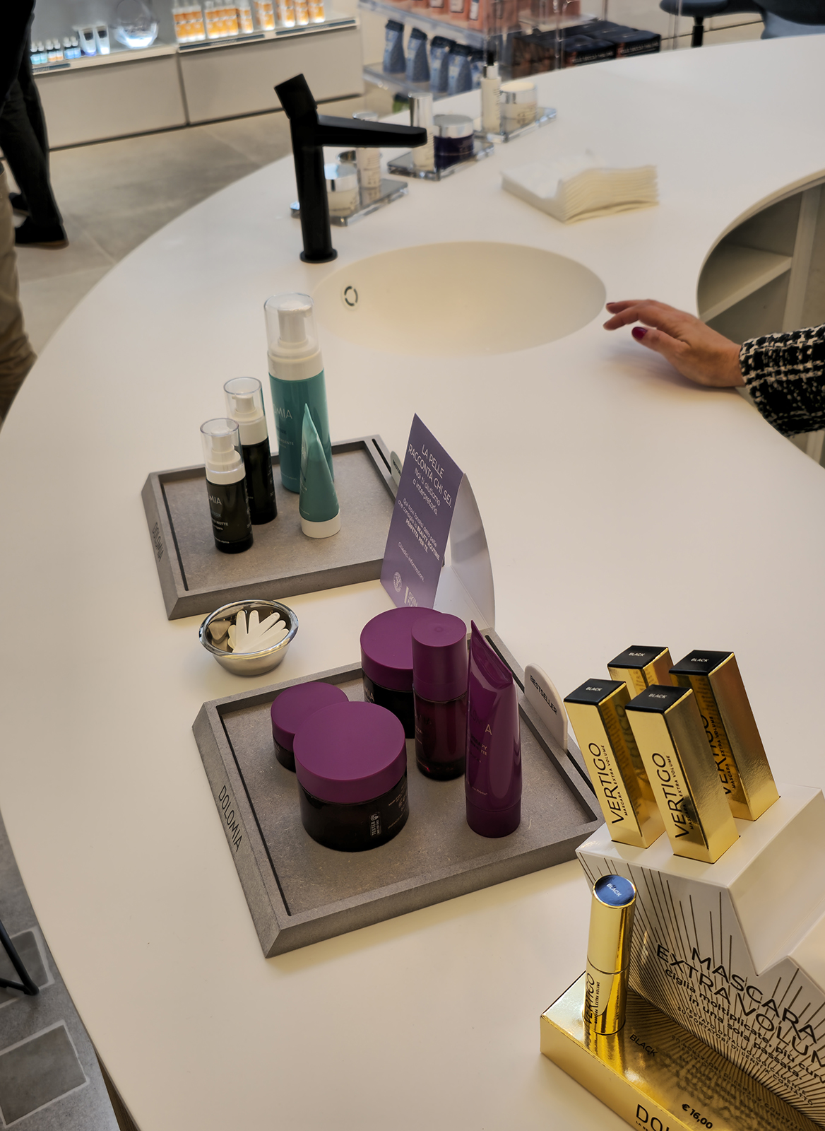 La farmacia ideale, è l’opinione di Corvi, dovrebbe assomigliare a una chiesa, con un’area di accoglienza subito all’ingresso, la navata centrale che porta al banco dell’etico e sui lati le aree dedicate alla consulenza e ai servizi. Nel concept di Farmacie Specializzate, l’area accoglienza è caratterizzata da un banco circolare che ospita anche il “dermobar”, per prove trucco e consigli sul beauty.