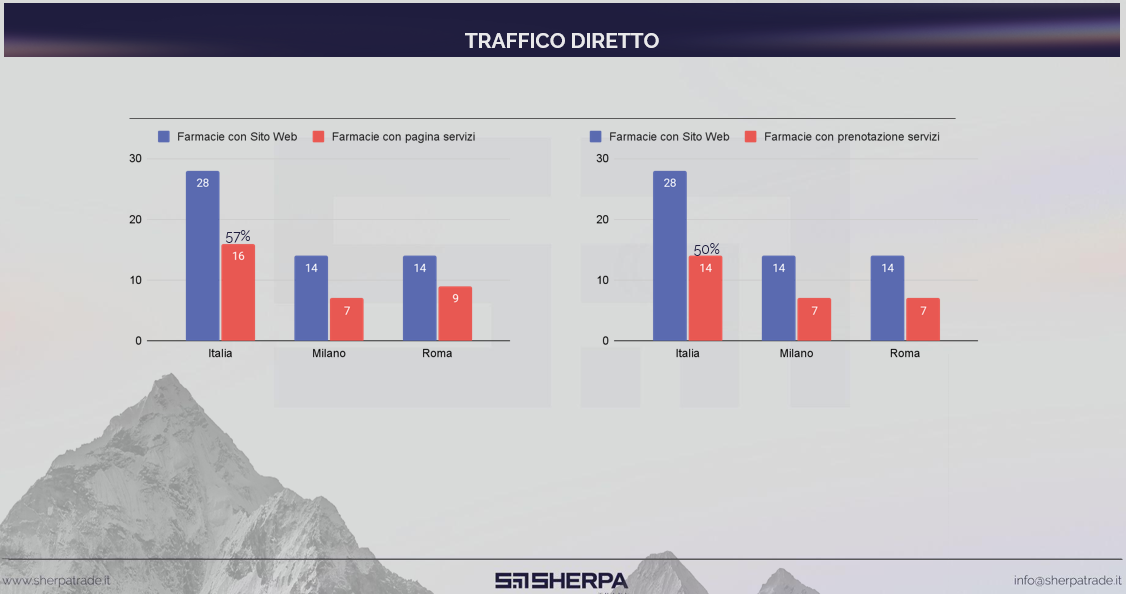 Ma qual è, oggi lo stato dell’arte riguardo all’impronta che le farmacie lasciano sulla rete? Per rispondere gli analisti di Sherpa Trade hanno preso a campione le farmacie di Roma e di Milano che totalizzano almeno 100 recensioni online su Google Maps: di fatto, ha spiegato Longo, lo si può considerare un piccolo censimento delle farmacie che, nelle due metropoli, dovrebbero distinguersi per un approccio al digitale più maturo, anche solo per il fatto che i loro clienti hanno si sono sentiti in dovere di fornire una recensione del servizio e dell’offerta trovati nel punto vendita.