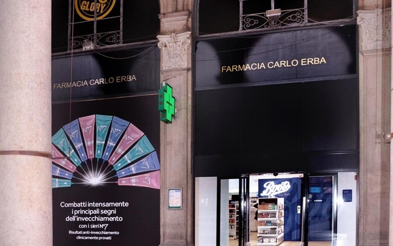 Presente in Piazza Duomo dal 1879, la Farmacia Carlo Erba è una delle più antiche del complesso monumentale della Galleria Vittorio Emanuele II. L’esercizio, rilevato da Farma Acquisition Holding del 2018 e “vestito” con il marchio Boots l’anno successivo, si avvicina al suo 150° anniversario e il Comune di Milano, riconosciutone il valore identitario, storico e culturale, ha rinnovato la concessione dei locali per preservare la destinazione d’uso.