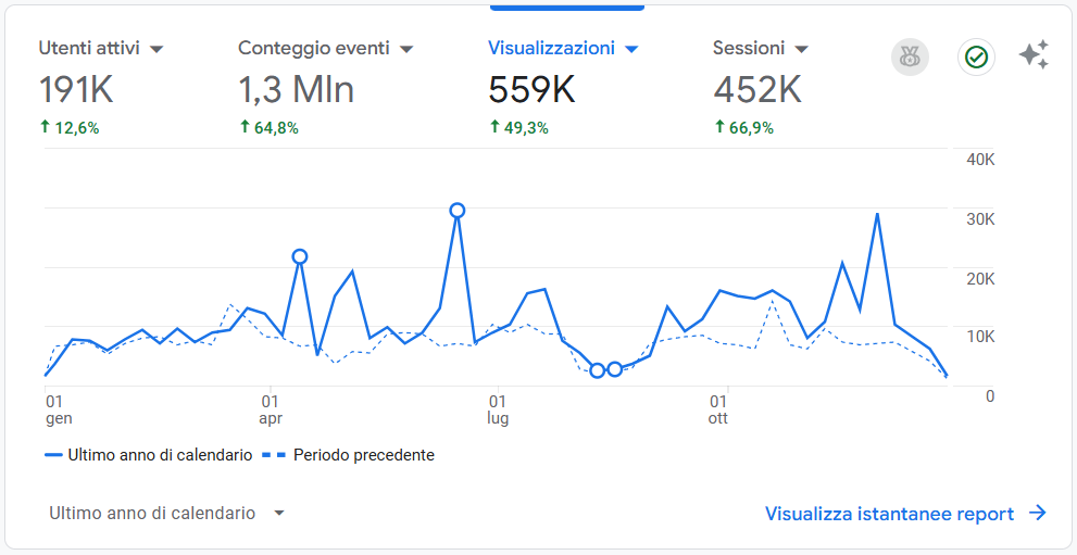 I dati di Google Analytics: visualizzazioni +50% in un anno