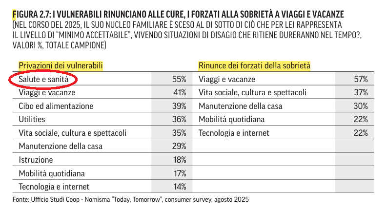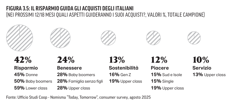 Nei consumi, le famiglie italiane sono sempre più sulla “difensiva”: riducono gli acquisti d’impulso, pianificano, confrontano e concentrano il budget su ciò che percepiscono come consumi incomprimibile. In questo perimetro, la salute resta una priorità ma viene i consumi si caratterizzano per una maggiore attenzione al prezzo e una crescente apertura verso canali percepiti come convenienti. La contraddizione è solo apparente: la spesa si orienta verso l’essenziale (utenze, alimentari, trasporti e salute fisica), mentre il risparmio diventa il primo driver dichiarato d’acquisto. E per il canale farmacia, che deve alla spesa “out of pocket” una parte importante delle sue vendite, quest’evoluzione implica domanda più selettiva, più sensibile a promozioni e valore percepito e più contendibile da gdo e online.